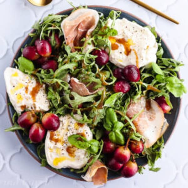 This bright, creamy salad brings together warm grapes and cool greens for a simple starter that feels special.