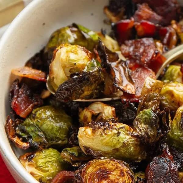 Crispy sprouts with a hint of sweetness and salty bacon bring balance to everything else on the plate.